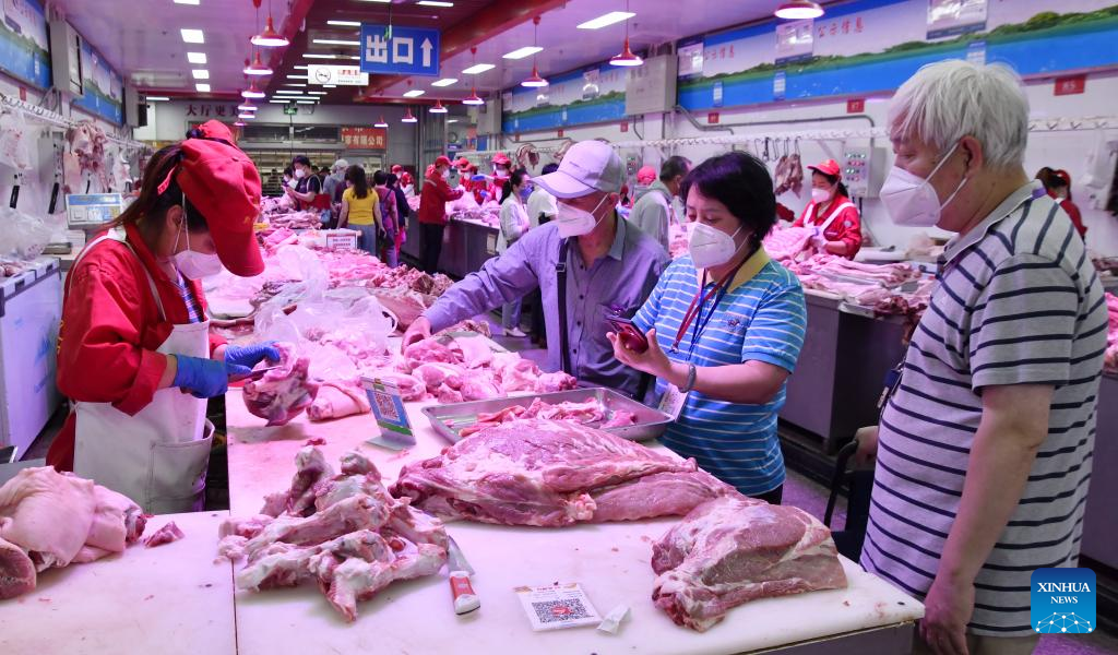 People shop at a market in Fengtai District, Beijing, capital of China, June 9, 2022.