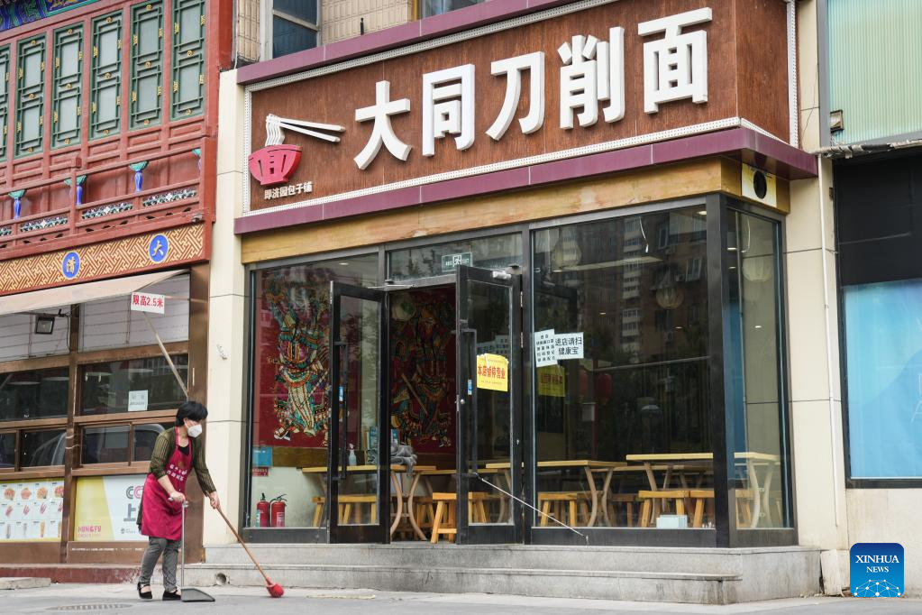 A staff member of a restaurant does the cleaning in Fengtai District, Beijing, capital of China, June 9, 2022.