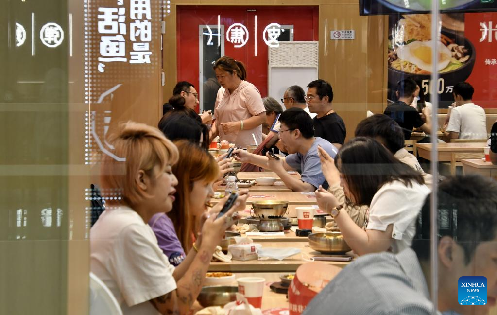 People dine at a restaurant in Fengtai District, Beijing, capital of China, June 9, 2022.