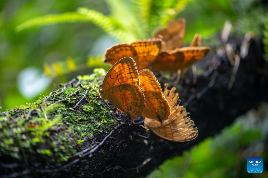 Zhou Xuesong, an animal and plant conservation expert with Southwest Forestry University, said Ma'an'di is warm and humid all year round, with a forest coverage rate of 70 percent and an altitude ranging from 105 meters to 3,012 meters, rendering it a complete monsoon evergreen broad-leaved forest and other vegetation types, and a basic ecological environment suitable for butterflies.