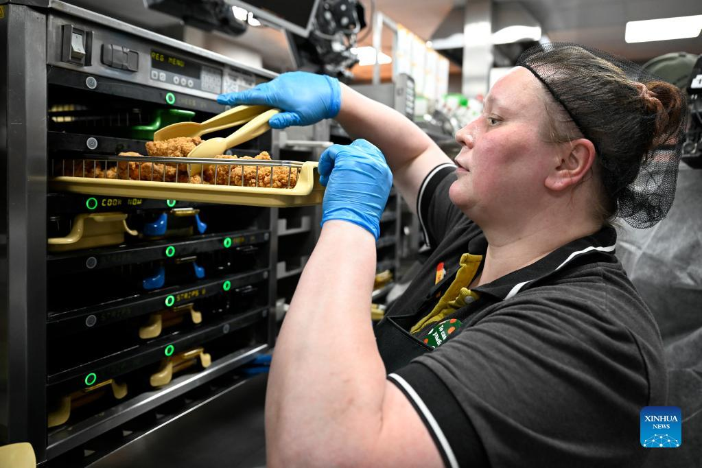 An employee prepares food at the newly opened fast food restaurant in a former McDonald's outlet in central Moscow, Russia, on June 12, 2022. The successor to McDonald's in Russia, "Vkusno - i tochka," reopened the first batch of 15 restaurants in Moscow and its suburbs on Sunday, three months after the U.S. fast-food chain ended its business in Russia. (Photo by Alexander Zemlianichenko Jr/Xinhua)