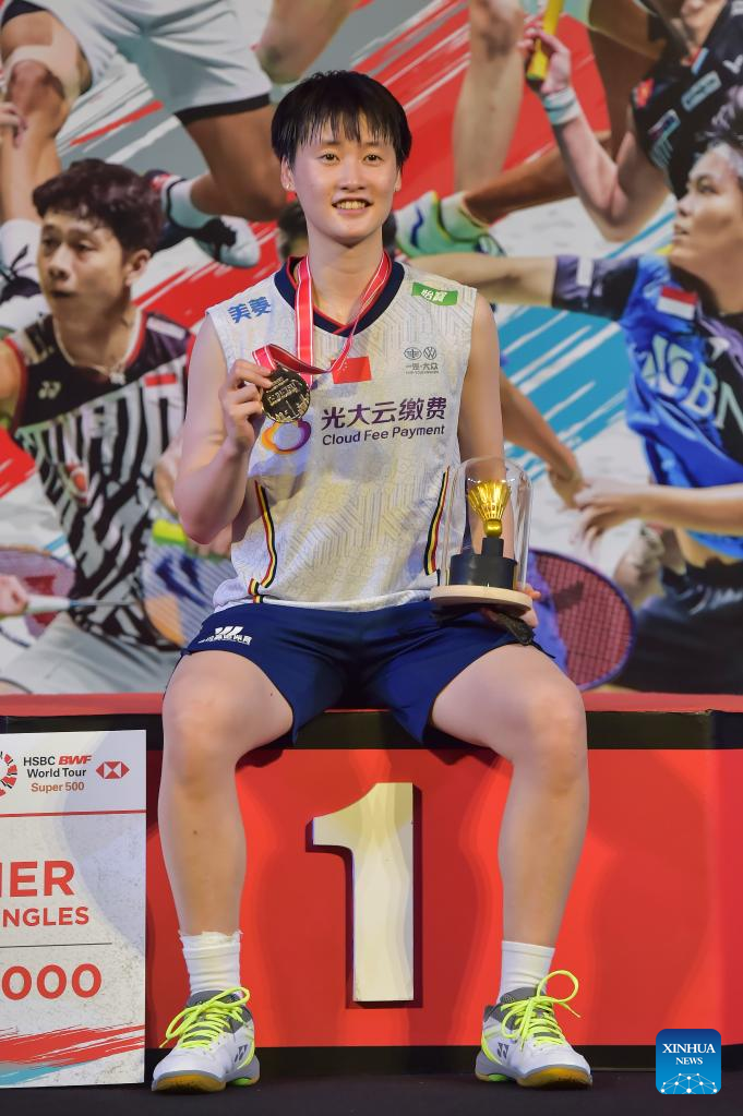 China's Chen Yufei poses during the awarding ceremony of women's singles final match at Daihatsu Indonesia Masters 2022 at the Istora Senayan sports stadium in Jakarta, Indonesia, June 12, 2022. (Xinhua/Veri Sanovri)