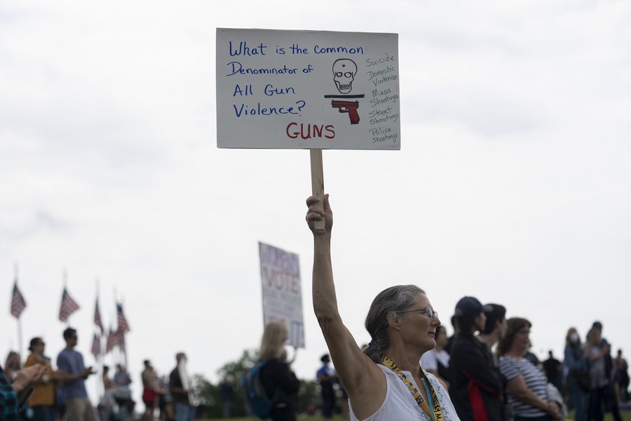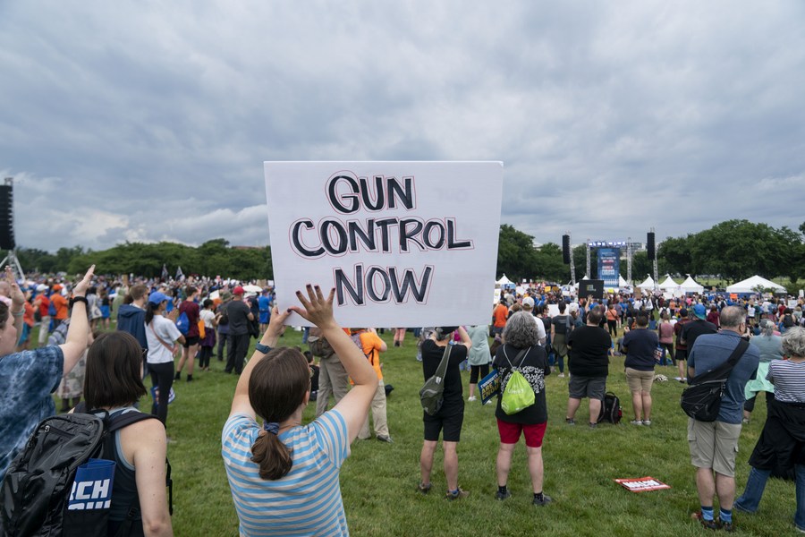 Sweta Kumar, a mother from Falls Church, Virginia, stood among the crowd. She told Xinhua that the mass shooting in Uvalde, Texas, that left 19 children and two teachers dead at an elementary school last month "hit me in a way that just shook me to the core."