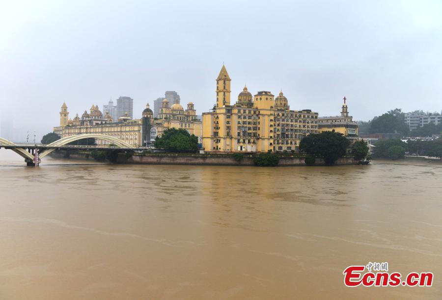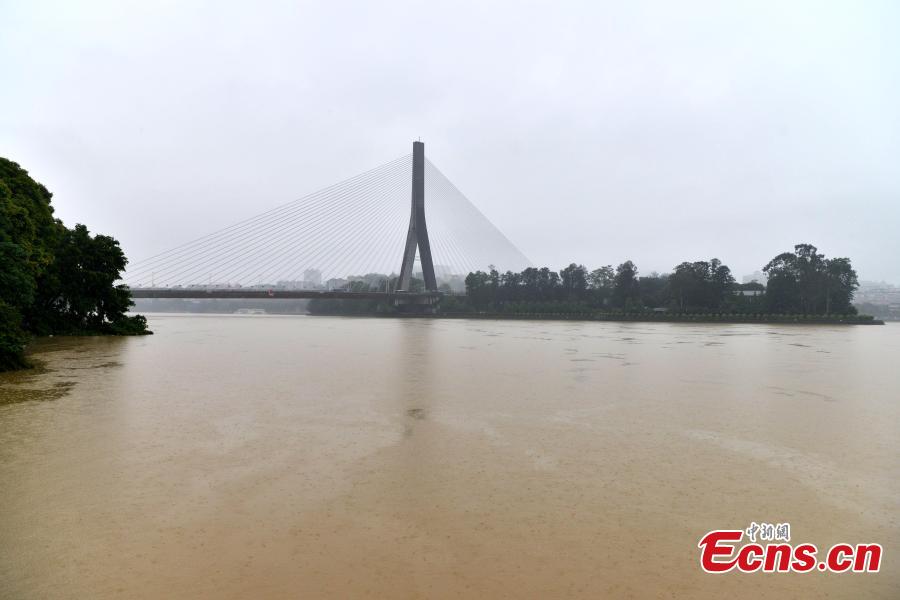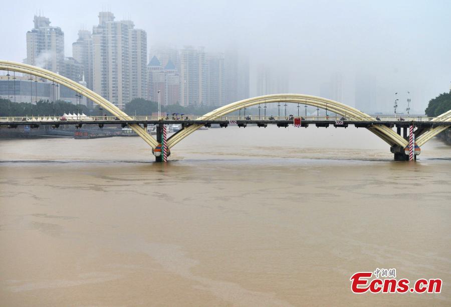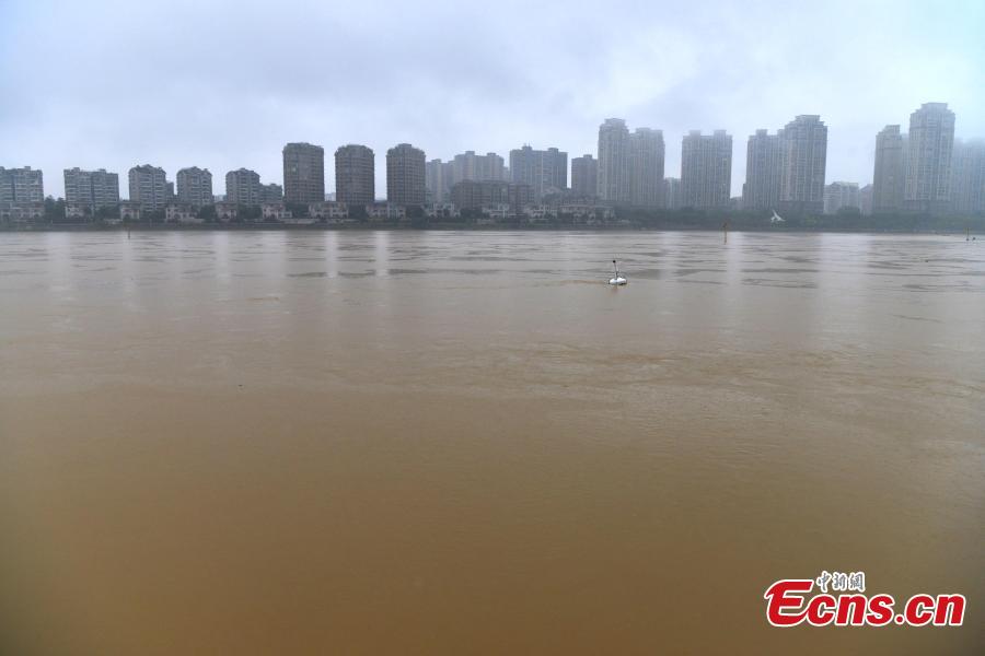 Aerial photo taken on June 13, 2022 shows the Minjiang River in Fuzhou, Fujian Province. Water level of the Fuzhou section of the Minjiang River has risen due to continuous rainfall and a level-III emergency response for flood control was initiated on Sunday. (Photo: China News Service/Zhang Bin)