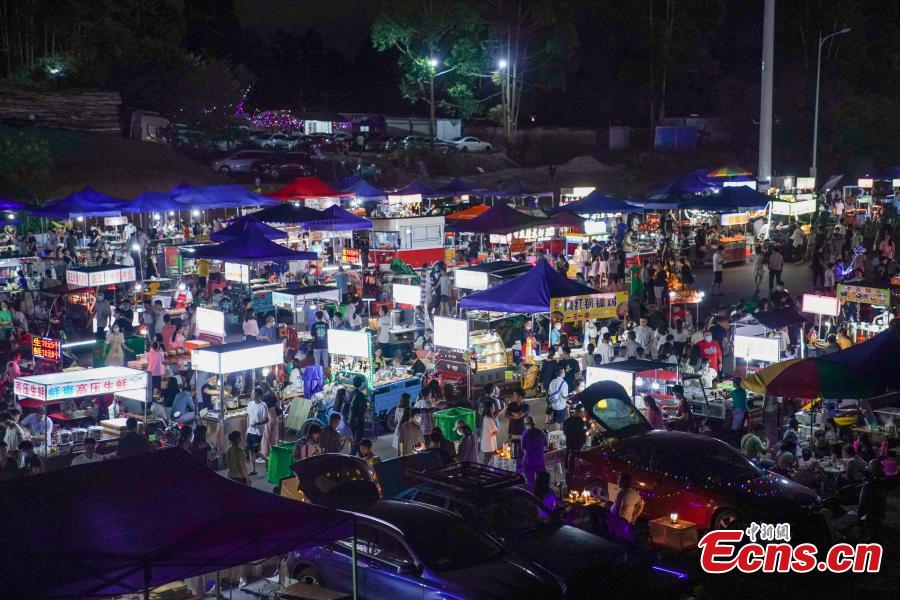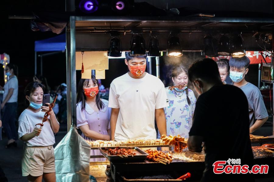 People eat local snacks at a night market in Nanning, south China's Guangxi Zhuang Autonomous Region, June 13, 2022. (Photo: China News Service/Chen Guanyan)