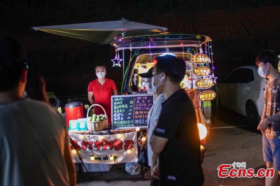 A vender sells local snacks at a night market in Nanning, south China's Guangxi Zhuang Autonomous Region, June 13, 2022. (Photo: China News Service/Chen Guanyan)