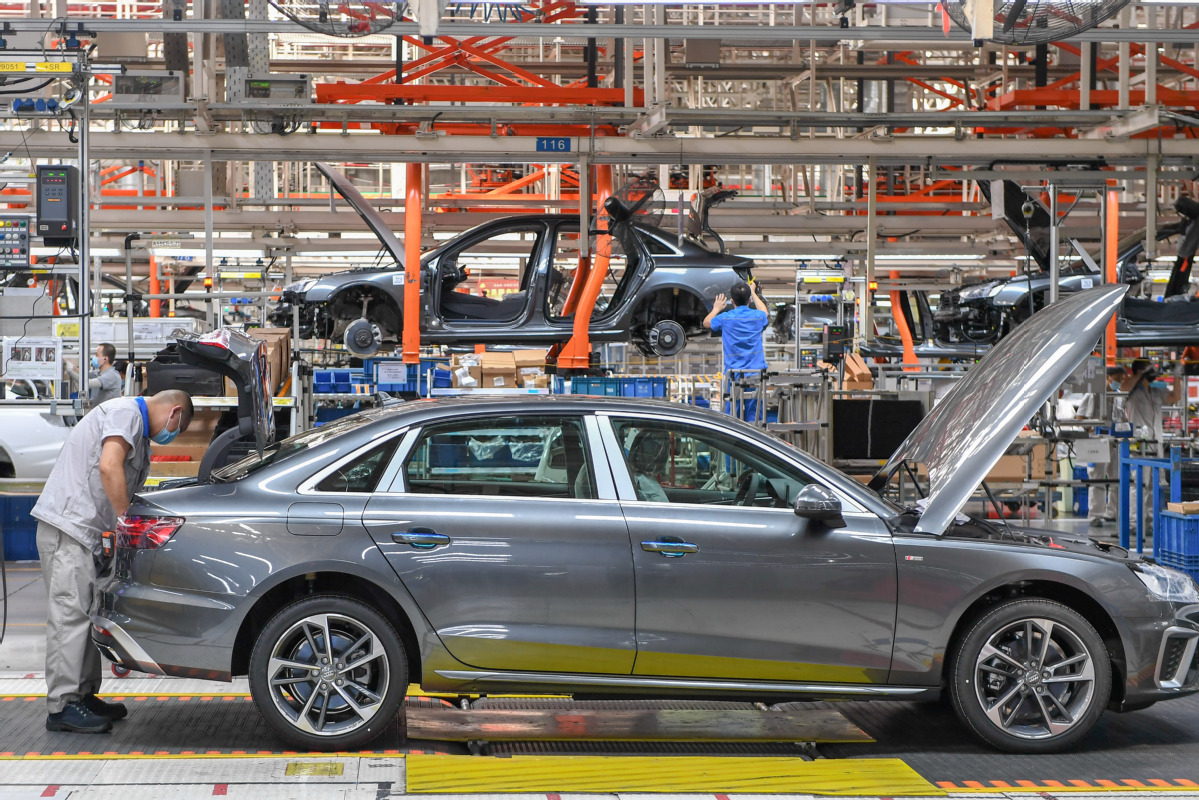 Workers assemble vehicles at an FAW-Volkswagen Automobile Co Ltd facility in Changchun, Jilin province. [Photo/Xinhua]