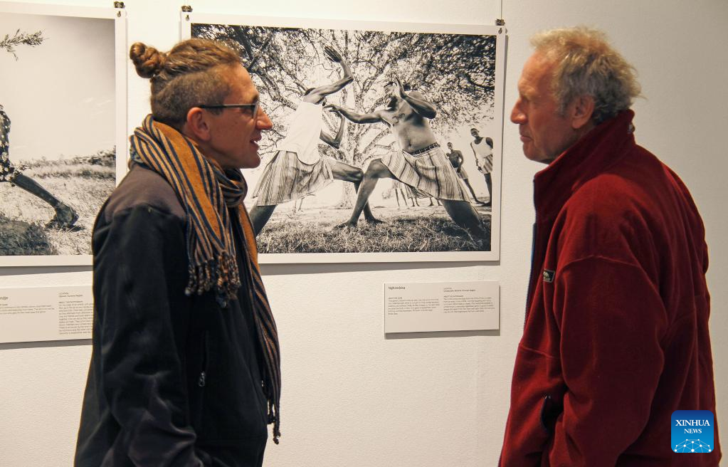 People visit a photo exhibition on Namibia's indigenous games and traditional sports in Windhoek, Namibia, on June 15, 2022. (Photo by Musa C Kaseke/Xinhua)