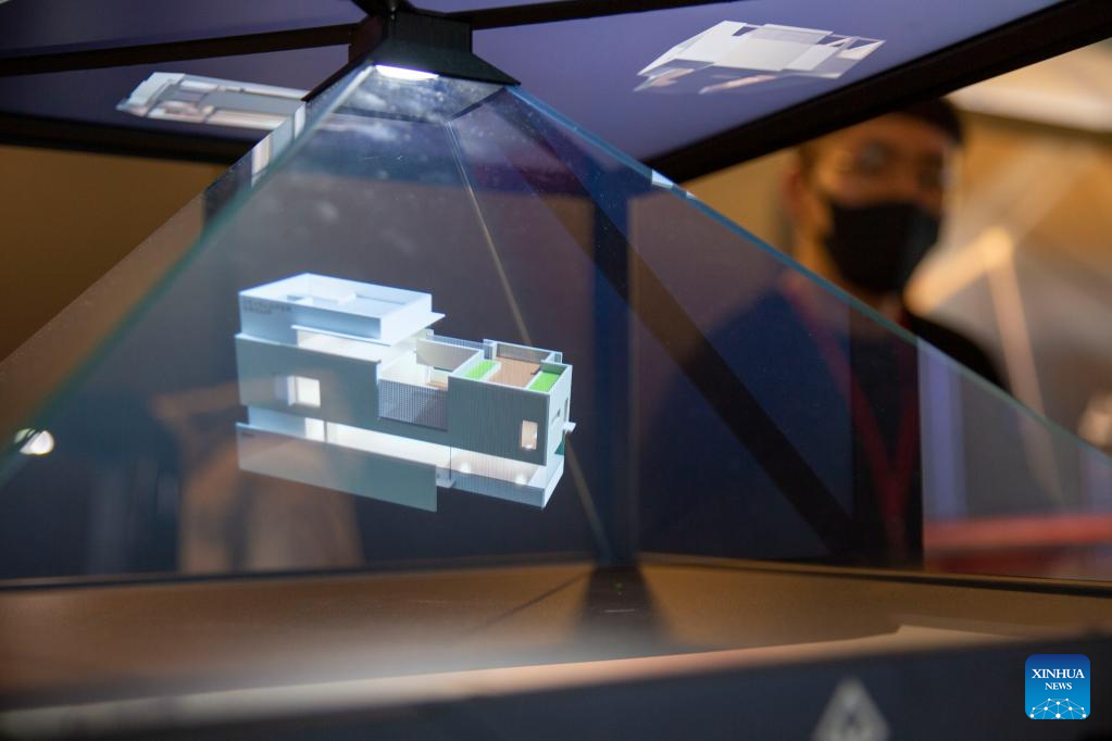 Photo taken on June 15, 2022 shows a holographic display during the Metaverse Expo 2022 held in Seoul, South Korea. The expo is held at the Coex Convention &Exhibition Center from June 15 to 17, presenting visitors with metaverse technologies in various scenarios. (Xinhua/Wang Yiliang)