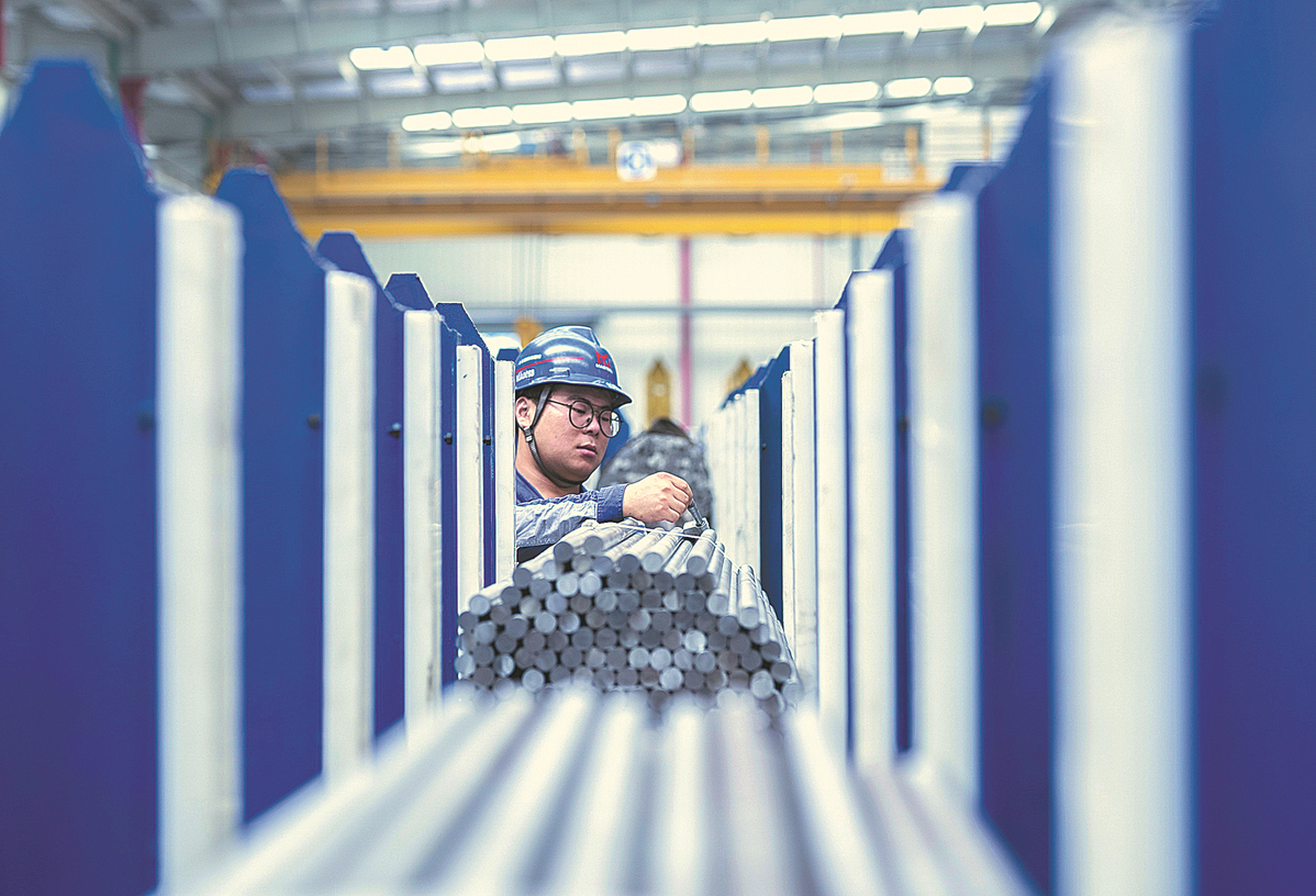 An employee checks products at a steel plant in Ma'anshan, Anhui province. LUO JISHENG/FOR CHINA DAILY