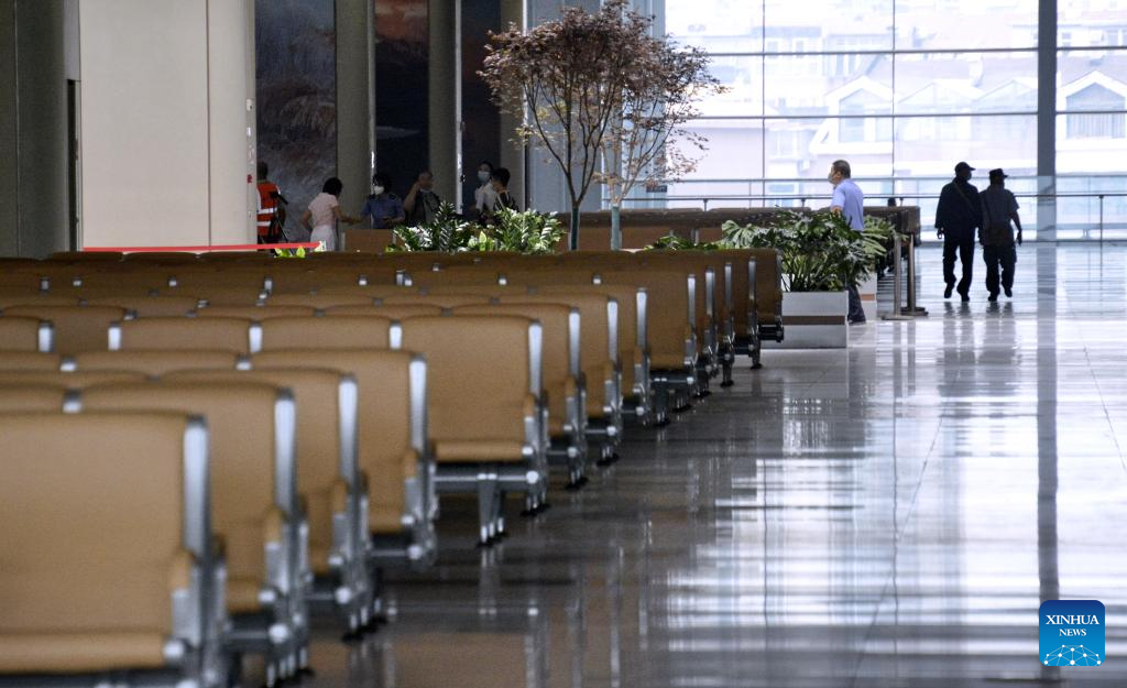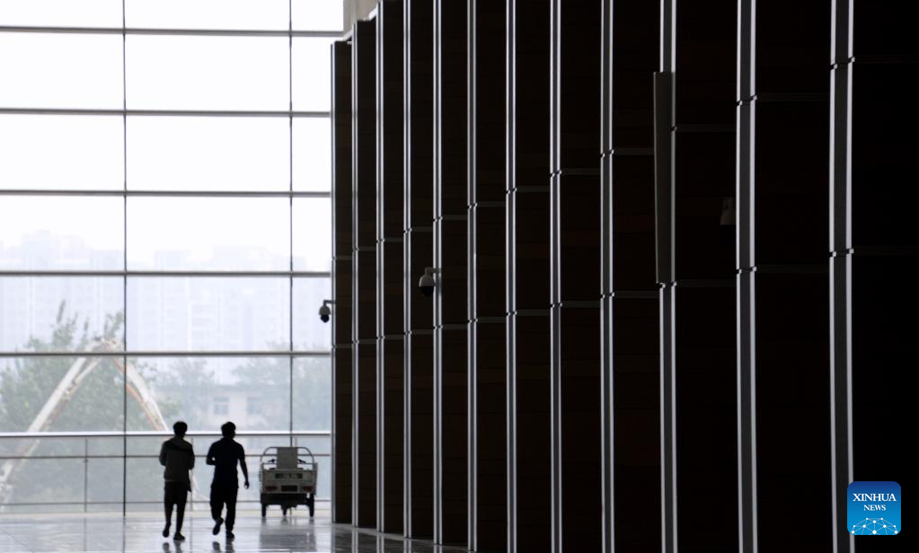 Staff members work at the waiting hall to prepare for the operation of Beijing Fengtai Railway Station in Beijing, capital of China, June 16, 2022. (Xinhua/Li Xin)