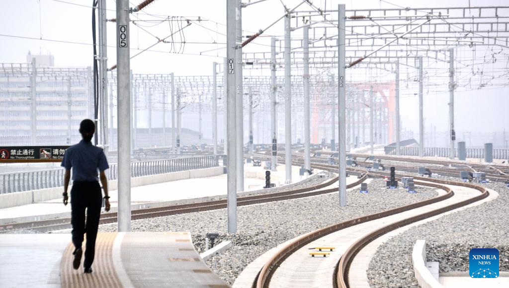 Photo taken on June 16, 2022 shows the way entering and leaving Beijing Fengtai Railway Station, which will be put into service soon, in Beijing, capital of China. (Xinhua/Li Xin)