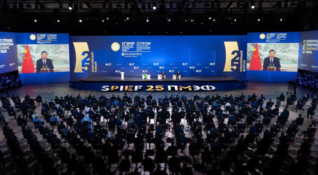 Chinese president addresses 25th St. Petersburg International Economic Forum