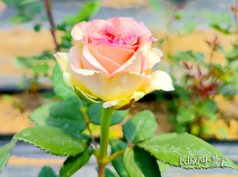Photo shows a blooming rose in a garden in Shangyi county, Hebei Province. (Great Wall Newmedia/Xi Xiaoyu)