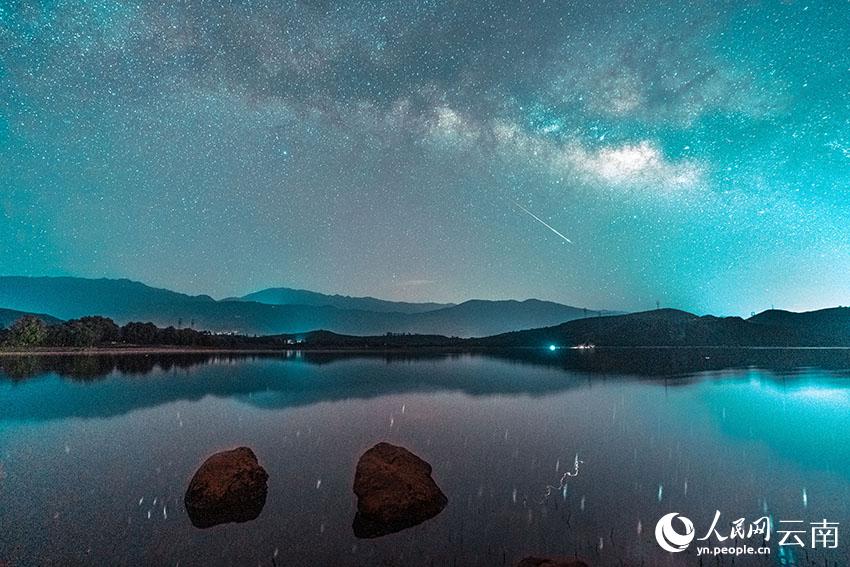 Photo shows the starry sky over the Haixihai Lake of southwest China's Yunnan Province. (Photo/Luo Xincai)
