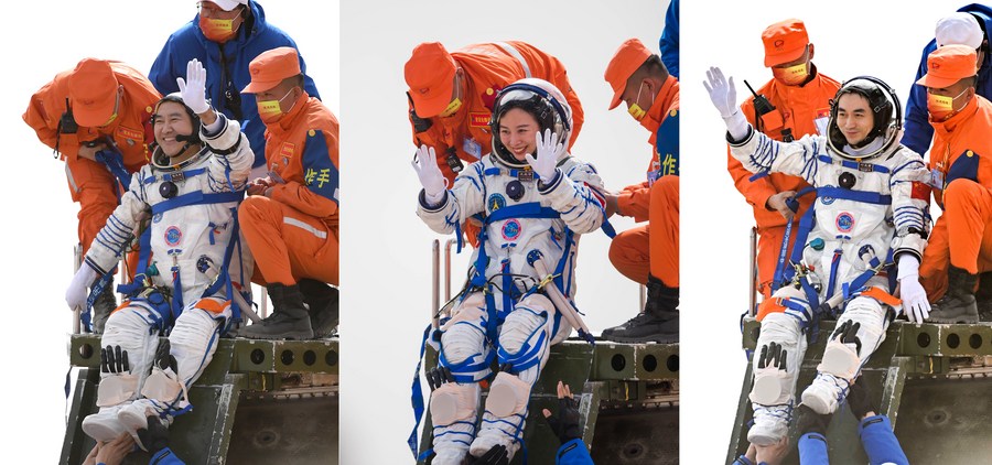 Launched on Oct. 16, 2021, the Shenzhou-13 spaceship sent the trio to China's space station core module Tianhe, where they lived and worked for six months, the longest stay in space by Chinese astronauts on a single mission.