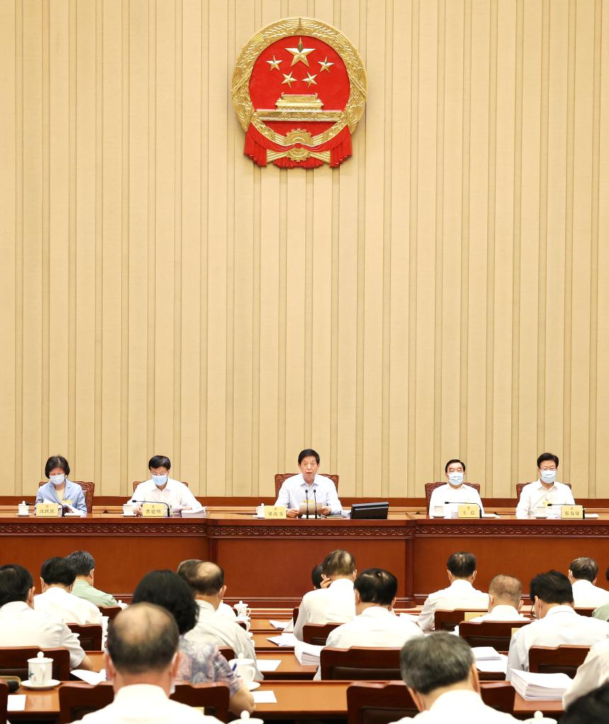 Li Zhanshu, chairman of the National People's Congress (NPC) Standing Committee, presides over the first plenary meeting of the 35th session of the 13th NPC Standing Committee at the Great Hall of the People in Beijing, capital of China, June 21, 2022. (Xinhua/Pang Xinglei)
