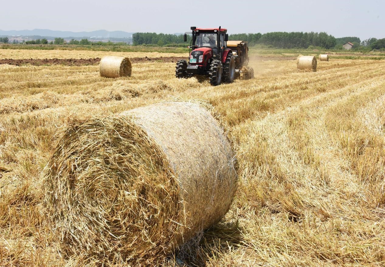 A straw baler works in a wheat field in Shangguangong village, Changde city, central China’s Hunan province, May 4, 2022. (People’s Daily Online/ Bai Yipu)