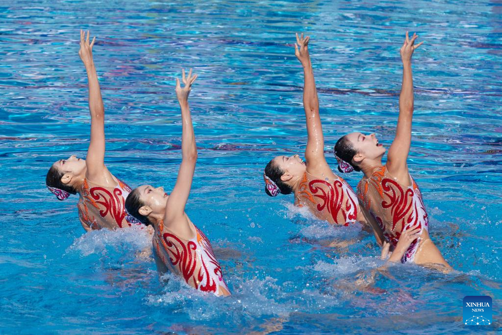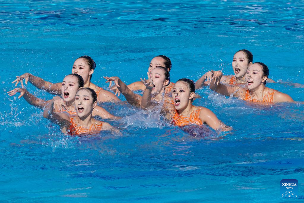 BUDAPEST, June 24 (Xinhua) -- China showed its prowess in the artistic swimming, winning the fourth title as it took the women's team free final victory at the 19th FINA World Championships here on Friday.