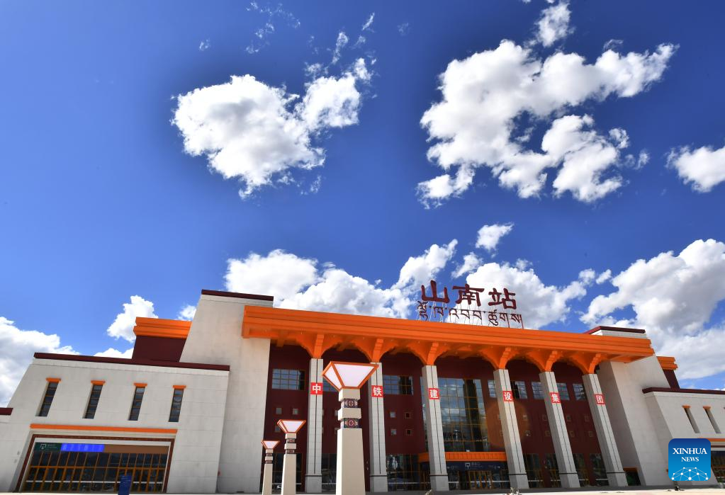 Photo taken on June 5, 2021 shows the Shannan Railway Station in Shannan, southwest China's Tibet Autonomous Region.