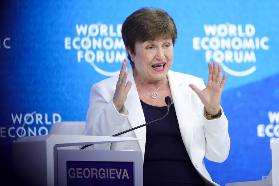 Managing Director of International Monetary Fund (IMF) Kristalina Georgieva attends a session during the World Economic Forum (WEF) 2022 Annual Meeting in Davos, Switzerland, May 25, 2022. (Xinhua/Zheng Huansong)