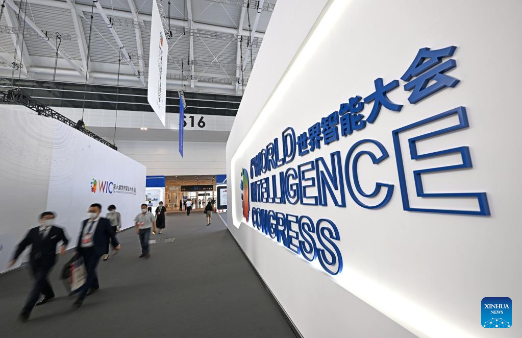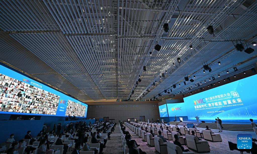 Participants arrive to attend the online opening ceremony of the 6th World Intelligence Congress and Summit on Innovation and Development in north China's Tianjin, June 24, 2022. (Xinhua/Zhao Zishuo)