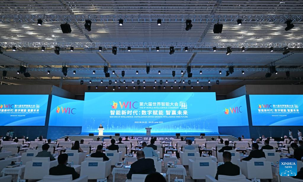 Photo taken on June 24, 2022 shows the online opening ceremony of the 6th World Intelligence Congress and Summit on Innovation and Development in north China's Tianjin. (Xinhua/Zhao Zishuo)