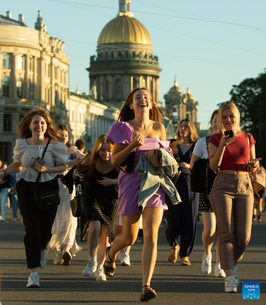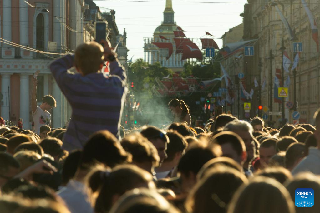 People flock to celebrate the Scarlet Sails festival marking school graduation in St. Petersburg, Russia, June 24, 2022. (Photo by Irina Motina/Xinhua)