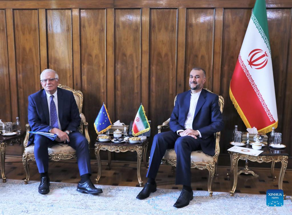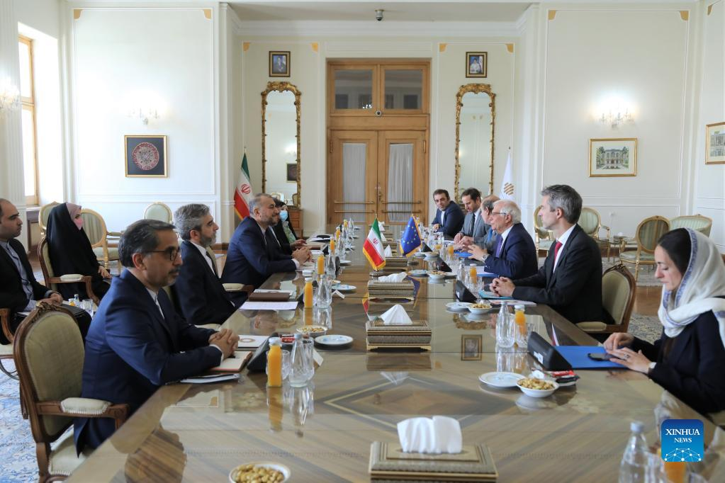 Iranian Foreign Minister Hossein Amir-Abdollahian meets with European Union foreign policy chief Josep Borrell in Tehran, Iran, on June 25, 2022. Iran and the European Union announced here on Saturday the resumption of international negotiations in Vienna in the coming days to revive the Iranian nuclear pact. (Iranian Foreign Ministry/Handout via Xinhua)