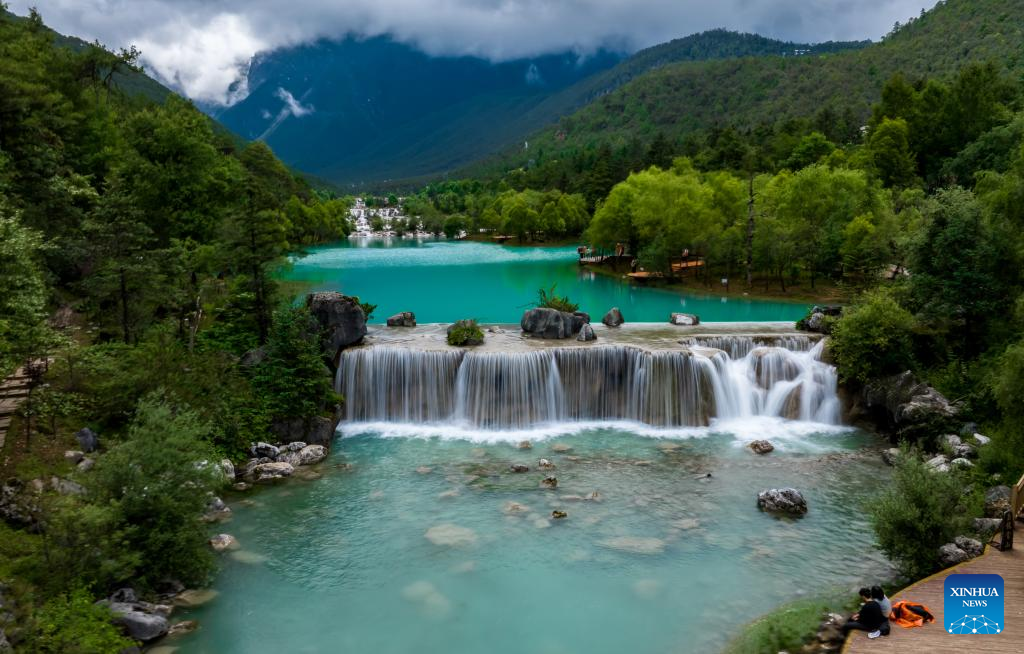 Tourists visit Blue Moon Valley at the foot of the Yulong Snow Mountain in Lijiang City, southwest China's Yunnan Province, June 26, 2022. (Xinhua/Jiang Wenyao)