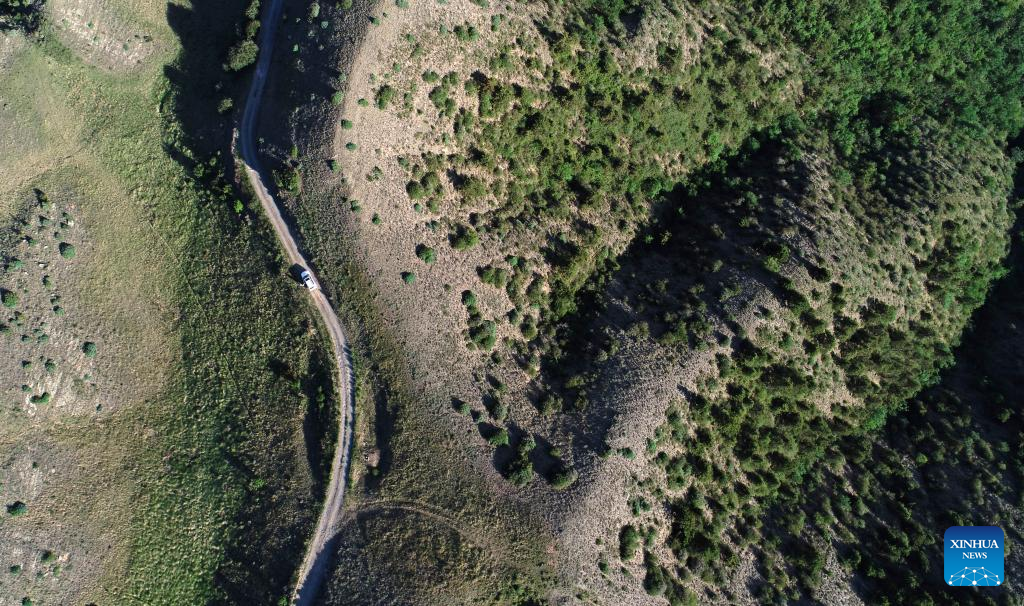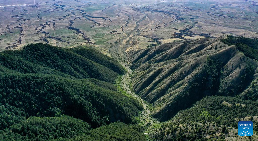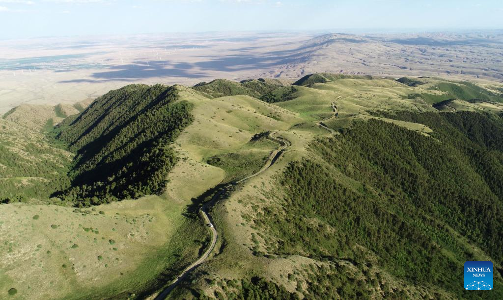 Aerial photo taken on June 23, 2022 shows a view of Luoshan Mountain in Wuzhong City, northwest China's Ningxia Hui Autonomous Region. (Xinhua/Feng Kaihua)