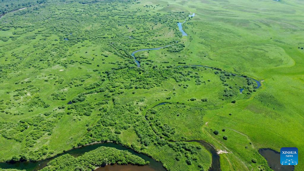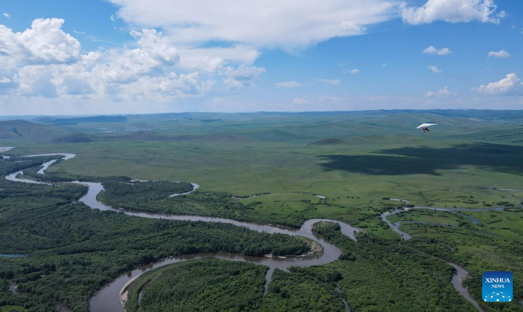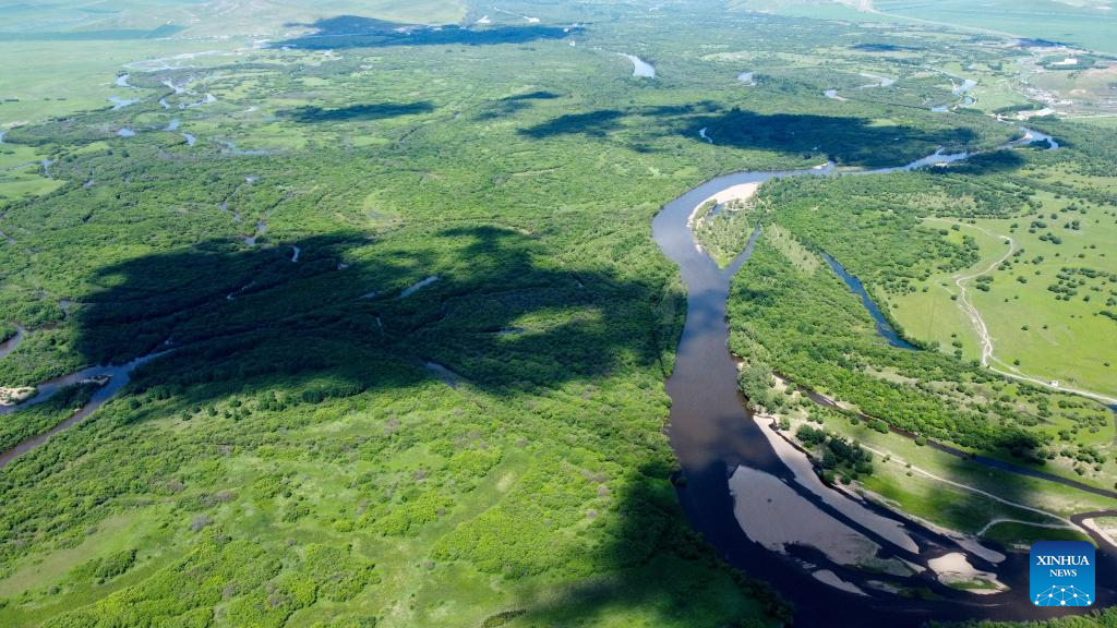 Photo taken on June 27, 2022 shows the scenery of a wetland in Ergun, Hulun Buir City, north China's Inner Mongolia Autonomous Region. (Xinhua/Bei He)