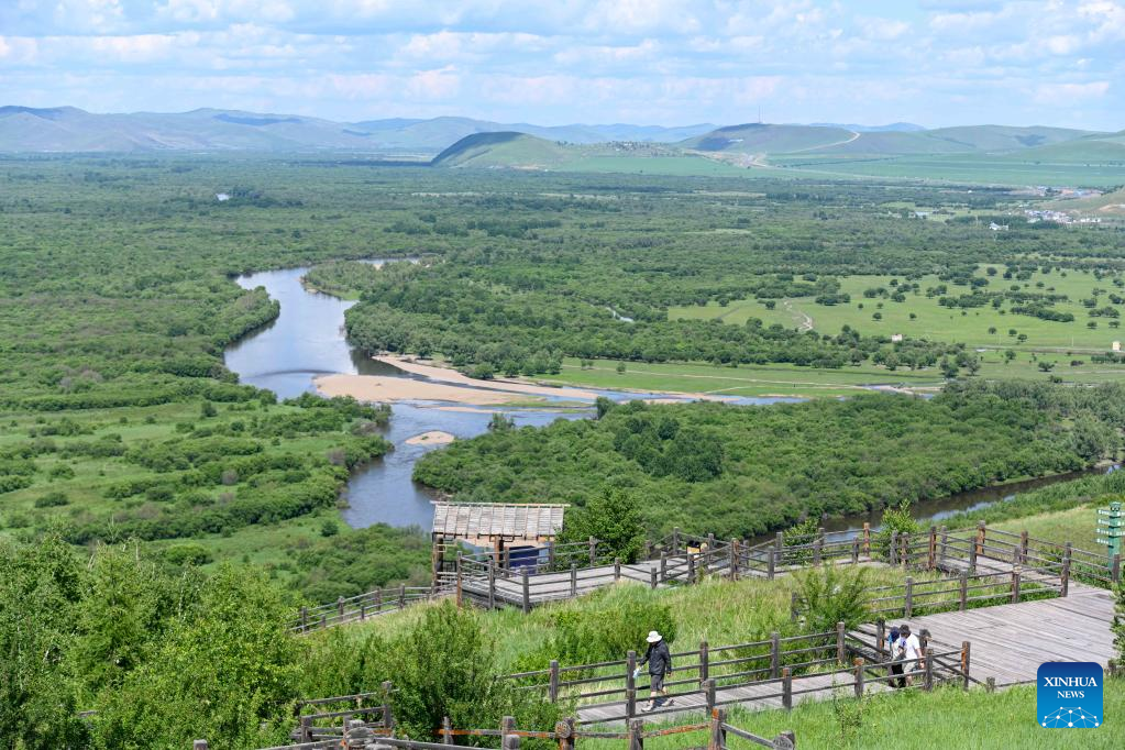 People visit a wetland in Ergun, Hulun Buir City, north China's Inner Mongolia Autonomous Region, June 27, 2022. (Xinhua/Bei He)