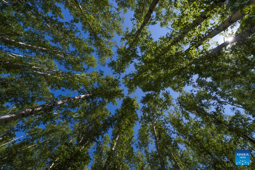 Photo taken on June 27, 2022 shows the scenery of white birch in Ergun, Hulun Buir City, north China's Inner Mongolia Autonomous Region. (Xinhua/Wang Zecong)
