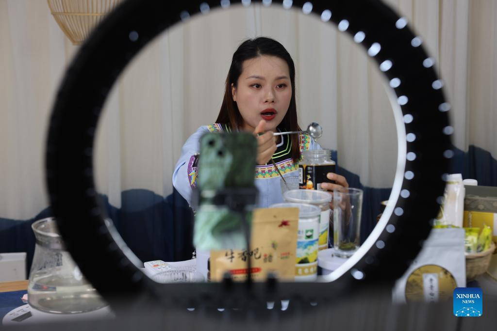 It is expected that more than 2,000 livestreaming promotion teams will be fostered in Rongjiang by 2023, which will create jobs for more than 10,000 people. (Photo by Wang Bingzhen/Xinhua)