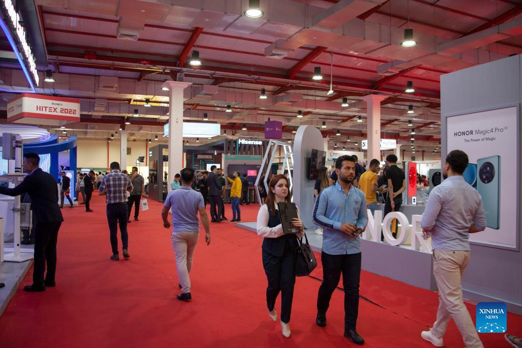 People visit the Hawler (Erbil) Information Technology Exhibition in Erbil, Iraq, June 27, 2022. The exhibition kicked off on Monday and will last till June 30. (Photo by Dalshad Al-Daloo/Xinhua)