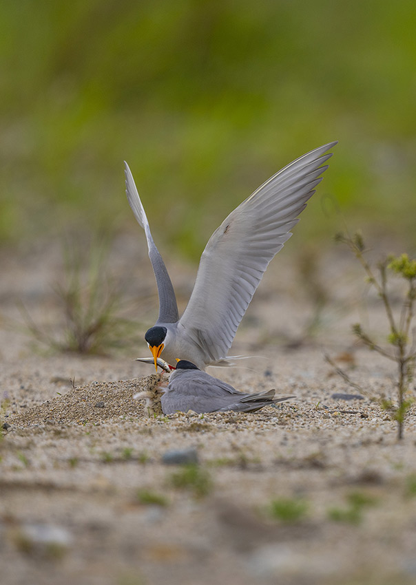 A pair of adult river terns feed their nestling at the Yingjiang National Wetland Park in southwest China's Yunnan Province. (Photo/Zhu Bianyong)