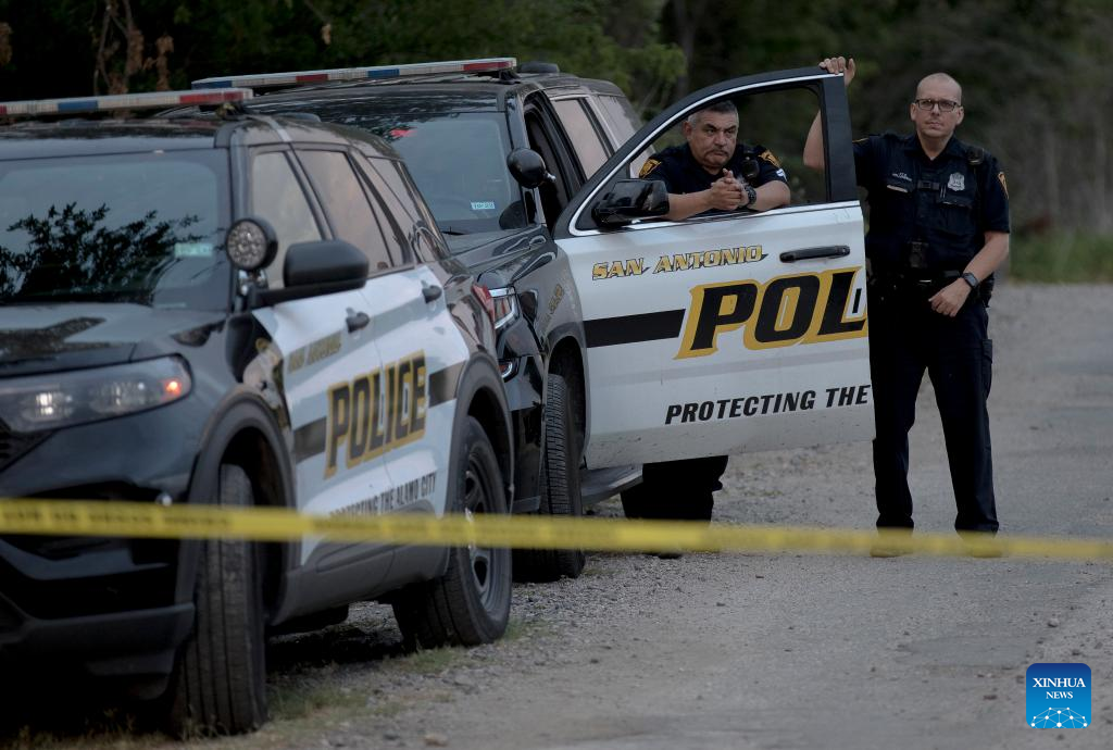 Photo taken on June 27, 2022 shows the scene of an alleged human smuggling mass casualty event in San Antonio, Texas, the United States. The death toll of migrants found on Monday inside a "cloned" and abandoned 18-wheeler in San Antonio has risen to 50, authorities said on Tuesday. (Photo by Nick Wagner/Xinhua)