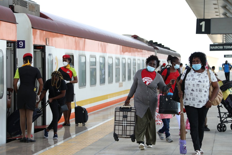 Passengers are seen at Nairobi station of Mombasa-Nairobi Standard Gauge Railway (SGR) in Nairobi, capital of Kenya, Nov. 17, 2021. (Xinhua/Dong Jianghui)