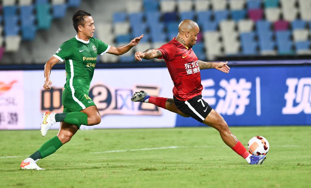 Serginho of Changchun Yatai competes during a 2022 season Chinese Football Association Super League (CSL) match between Changchun Yatai and Zhejiang in Haikou, south China's Hainan Province, June 29, 2022. (Xinhua/Yang Guanyu)