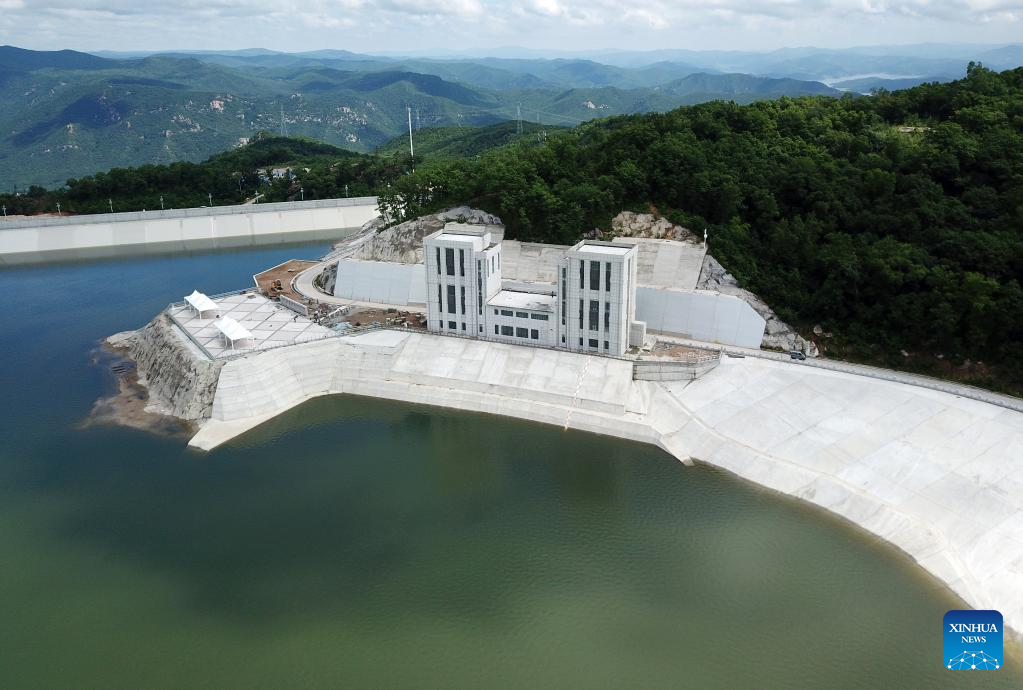 Aerial photo taken on June 29, 2022 shows the reservoir of the Huanggou pumped-storage hydropower station in Hailin City of Mudanjiang, northeast China's Heilongjiang Province. Huanggou power station, the pumped-storage hydropower station with the highest latitude in China, was put into full operation on Wednesday. The power station has a total installed capacity of 1.2 million kW. (Xinhua/Wang Jianwei)