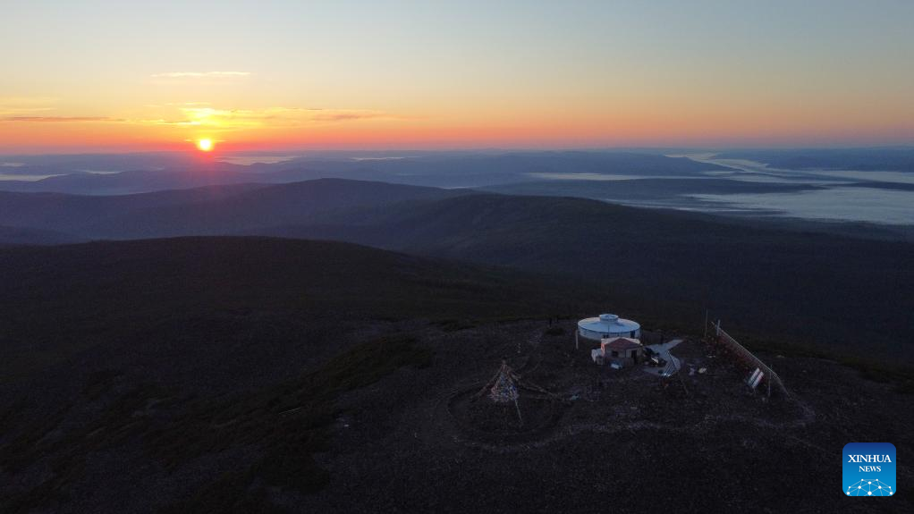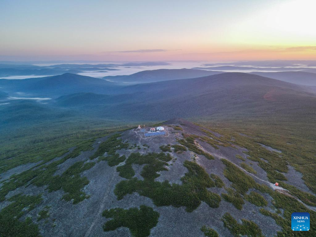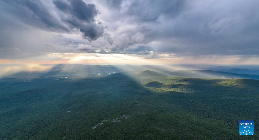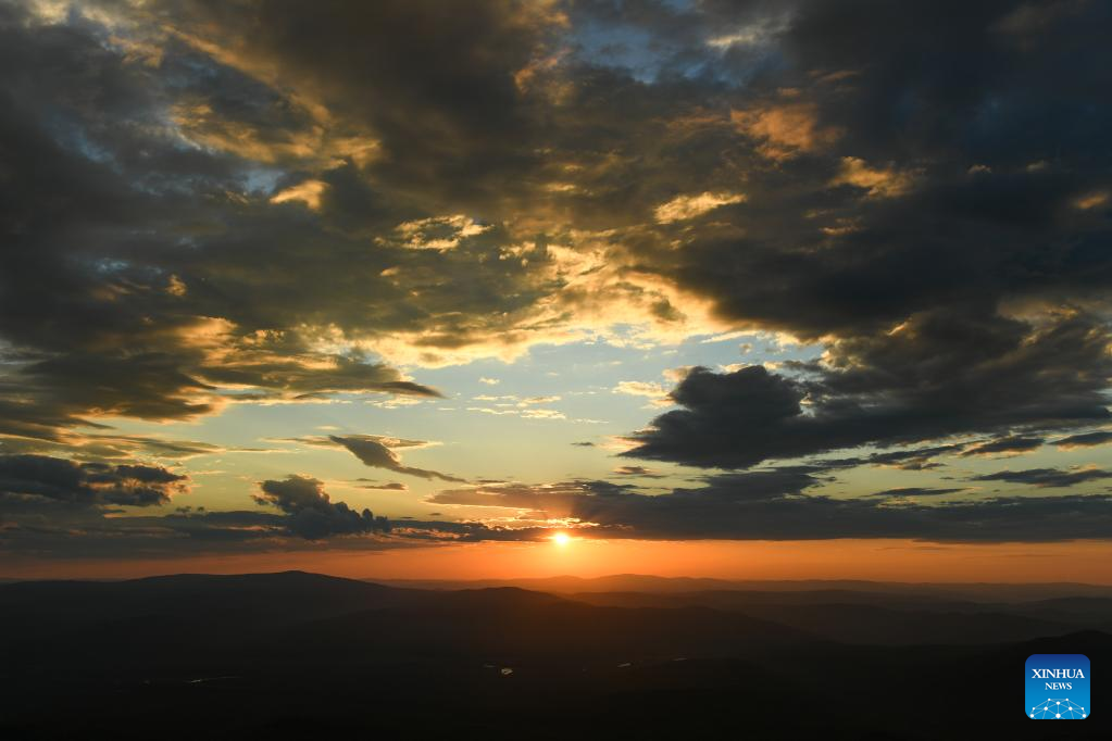 Photo taken on June 28, 2022 shows the sunset at Okliet Mountain in Genhe City, north China's Inner Mongolia Autonomous Region. (Xinhua/Bei He)