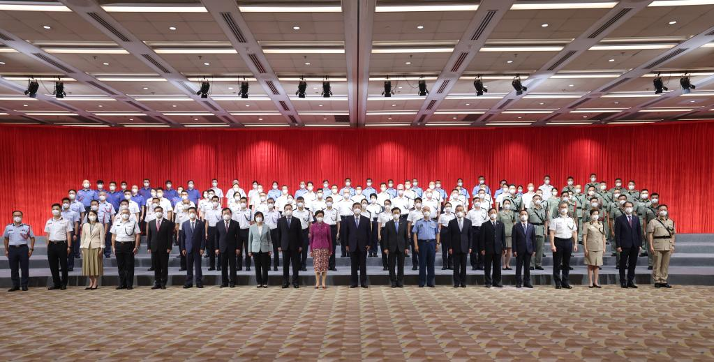 Chinese President Xi Jinping meets with representatives of the Hong Kong Special Administrative Region disciplined services, in Hong Kong, south China, June 30, 2022. (Xinhua/Liu Bin)