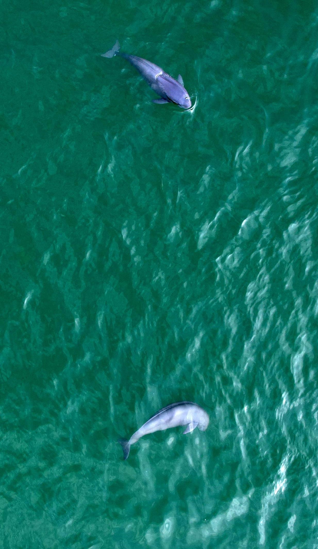 Yangtze finless porpoises are seen swimming near the Gezhouba Dam in Yichang, central China’s Hubei province, May 10, 2022. (People’s Daily Online/Liu Shusong)