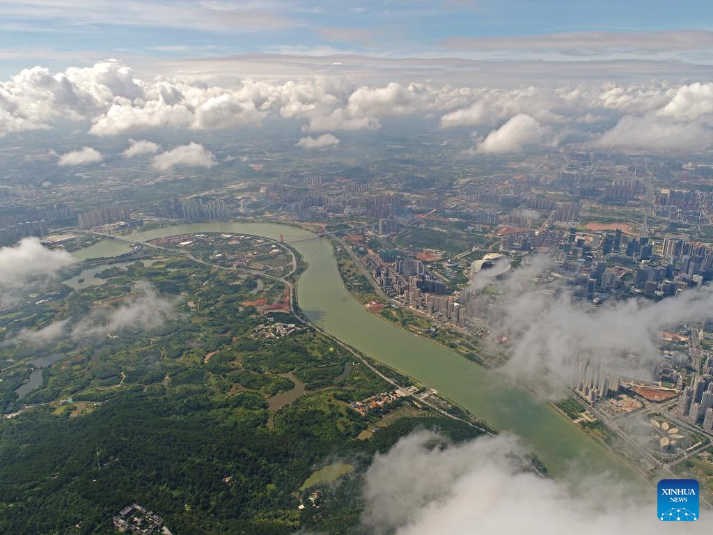 Aerial photo taken on July 1, 2022 shows the scenery of Yongjiang River in Nanning, south China's Guangxi Zhuang Autonomous Region. (Xinhua/Zhou Hua)