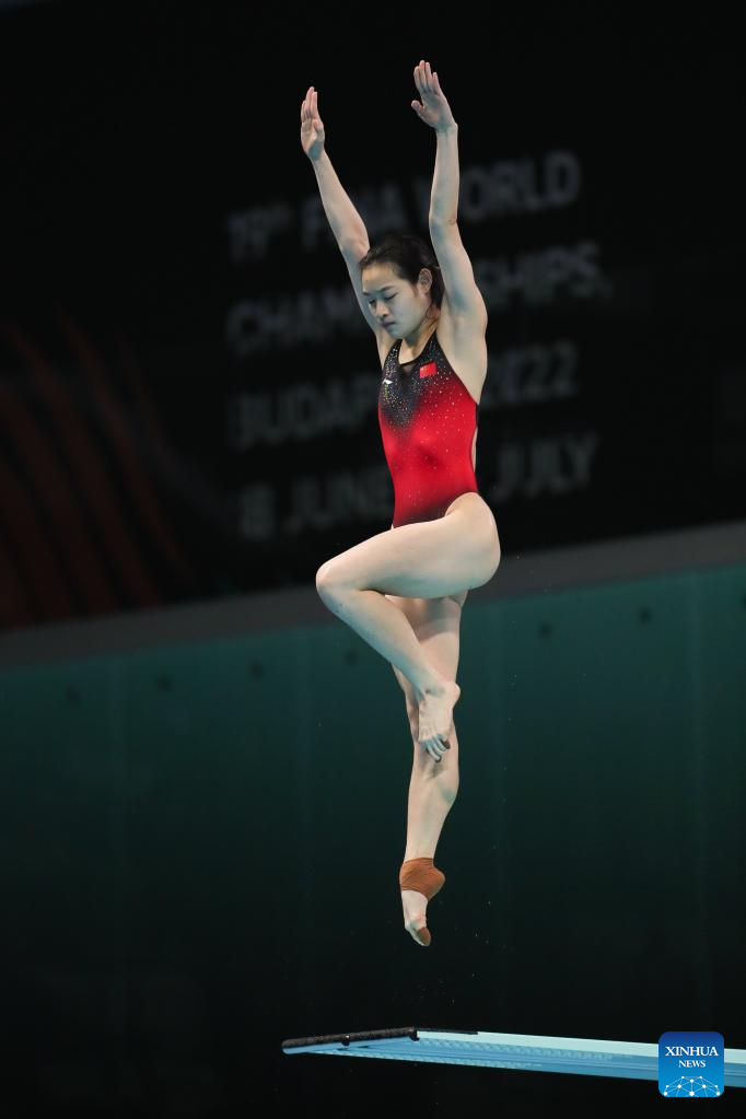 Chang Yani of China competes during the women's 3m springboard preliminary of diving at the 19th FINA World Championships in Budapest, Hungary, July 1, 2022. (Xinhua/Zheng Huansong)