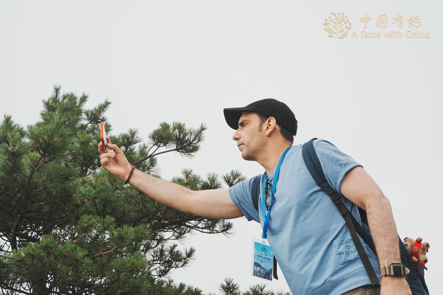 A member of "A date with China" international media tour poses for photos during a visit to Huangshan Mountain in East China's Anhui province, July 1st, 2022. [Photo/chinadaily.com.cn]