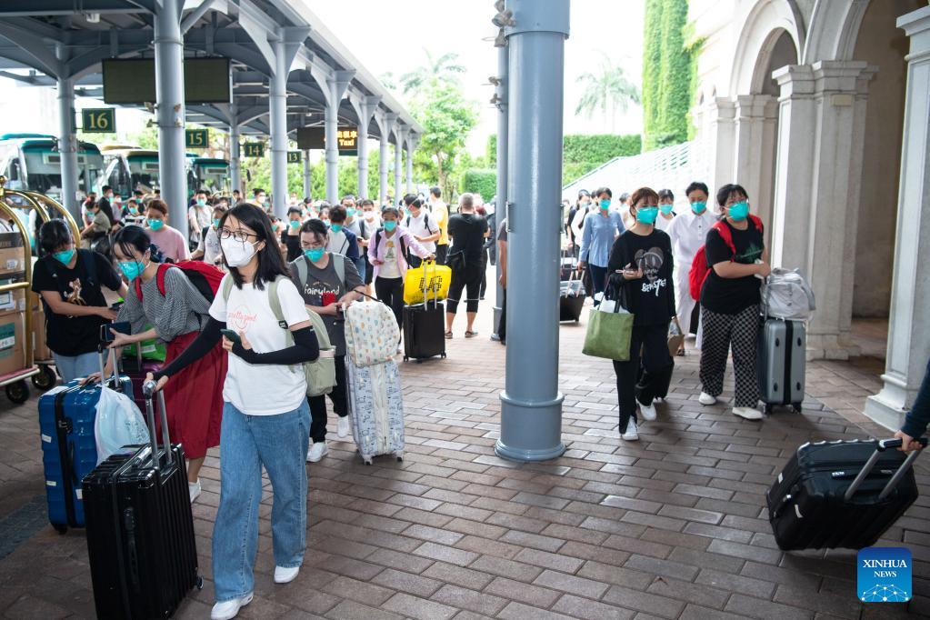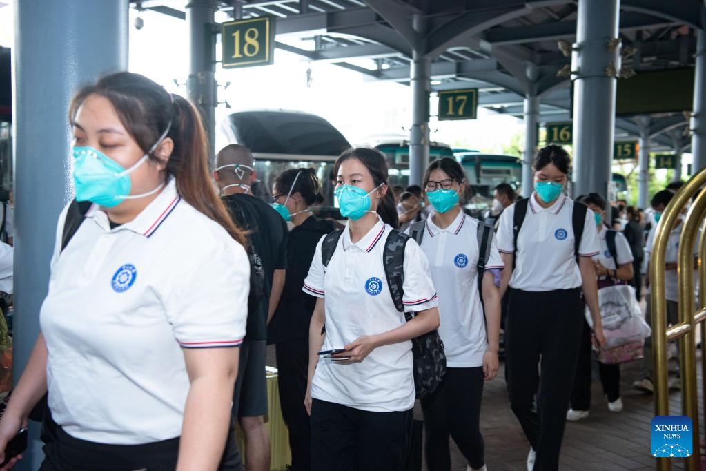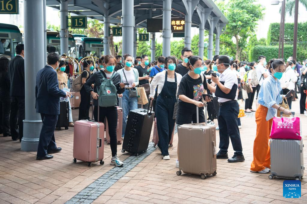 Medical workers from the mainland arrive in Macao, south China, July 3, 2022, to assist the Macao Special Administrative Region (SAR) government in carrying out mass testings. A total of 90 people in Macao tested positive for COVID-19 on Saturday, of which 47 were confirmed cases while the others were asymptomatic.