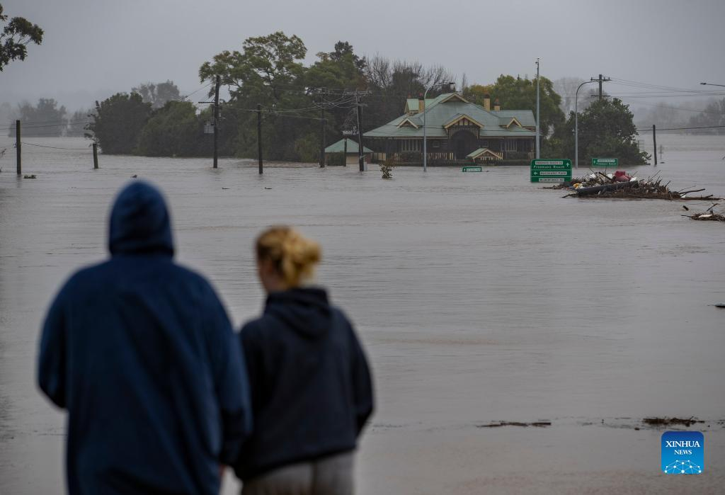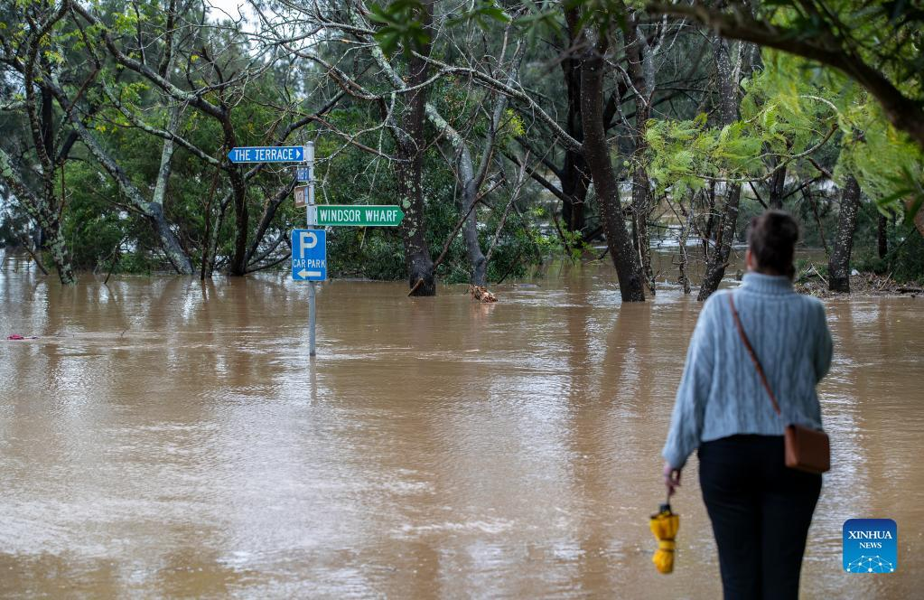Photo taken on July 4, 2022 shows a flooded area in Windsor, New South Wales, Australia. Heavy rainfall across Australia's southeast coast since Saturday last week has once again inundated Sydney and large parts of southeast New South Wales (NSW) with flash flooding and severe weather. (Xinhua/Bai Xuefei)