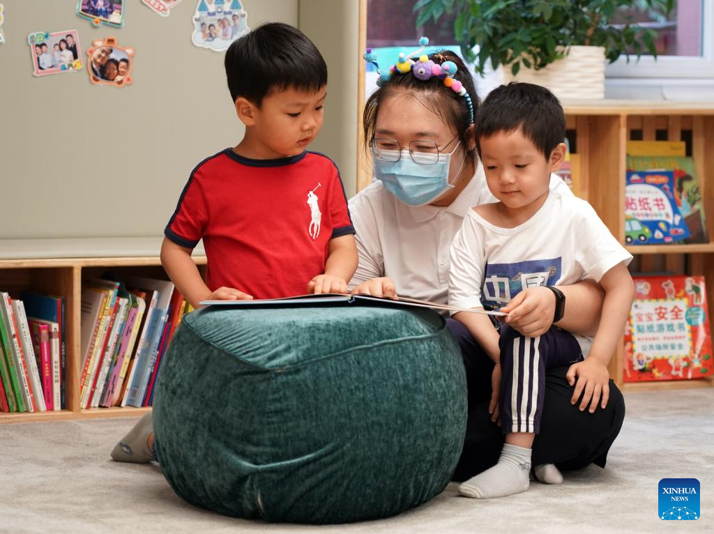 Children read books as a kindergarten reopens in Beijing, capital of China, July 4, 2022. Kindergartens in Beijng reopened on Monday. (Xinhua/Ren Chao)